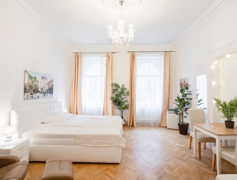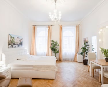 Luxusní apartmán v srdci Prahy, ideální pro skupiny až 18 osob, s vlastním wellness a pohodlným ubytováním.